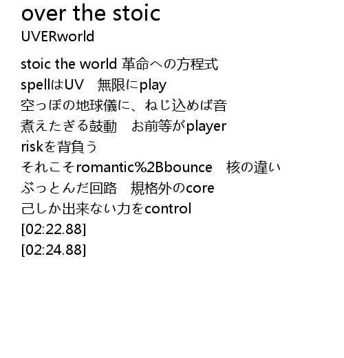 | [02:07.21] | stoic the world gé mìng fāng chéng shì |