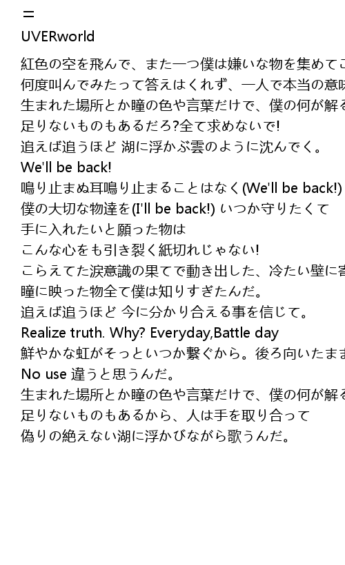 | Realize truth. Why? Everyday, Battle day | |