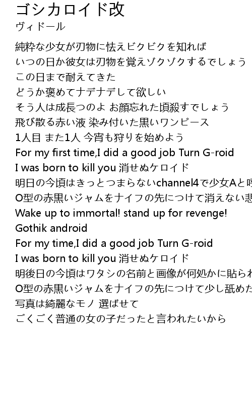 | [01:27.20] | I was born to kill you 消せぬケロイド |