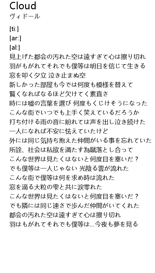 [02:39.71] でも僕等は一人じゃない 光陰る雲が流れた