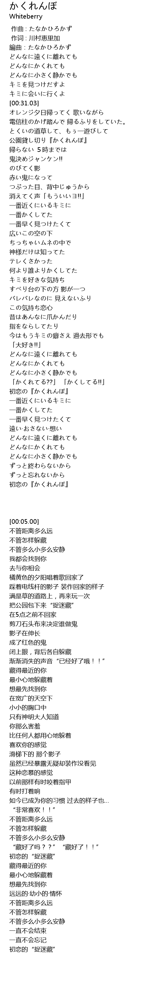 | [02:53.93] | 「かくれてる??」 「かくしてる!!」 |