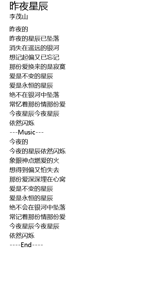 | [00:19.35] | 昨夜的星辰已坠落 |