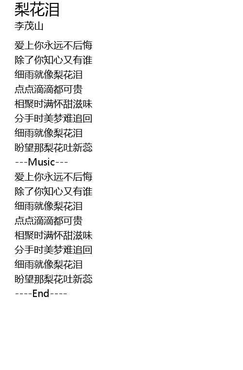 | [01:29.920] | 盼望那梨花吐新蕊 |