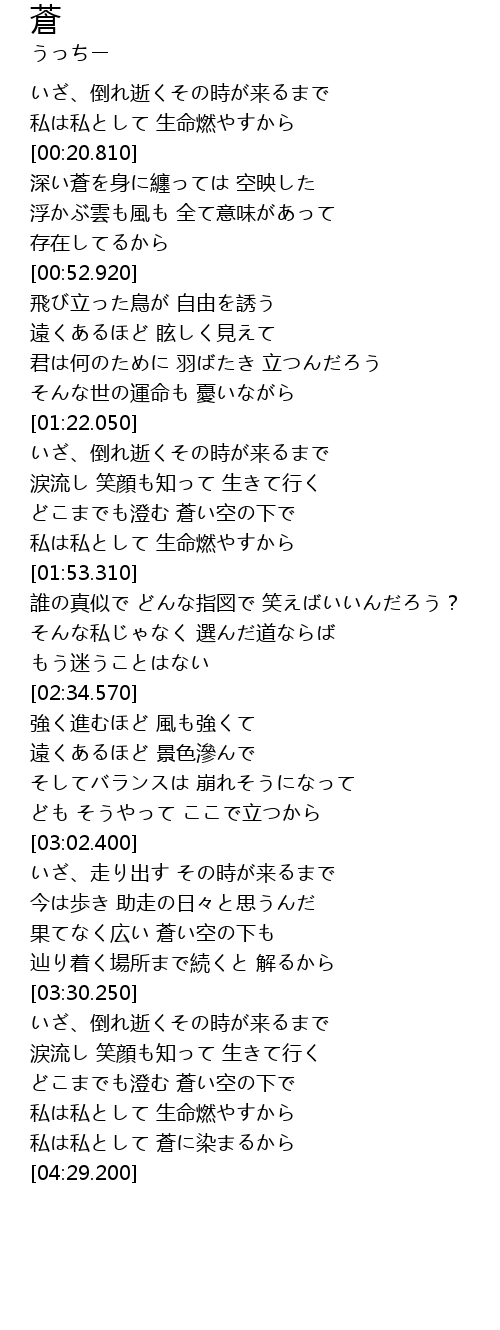 | [04:18.870] | 私は私として 蒼に染まるから |