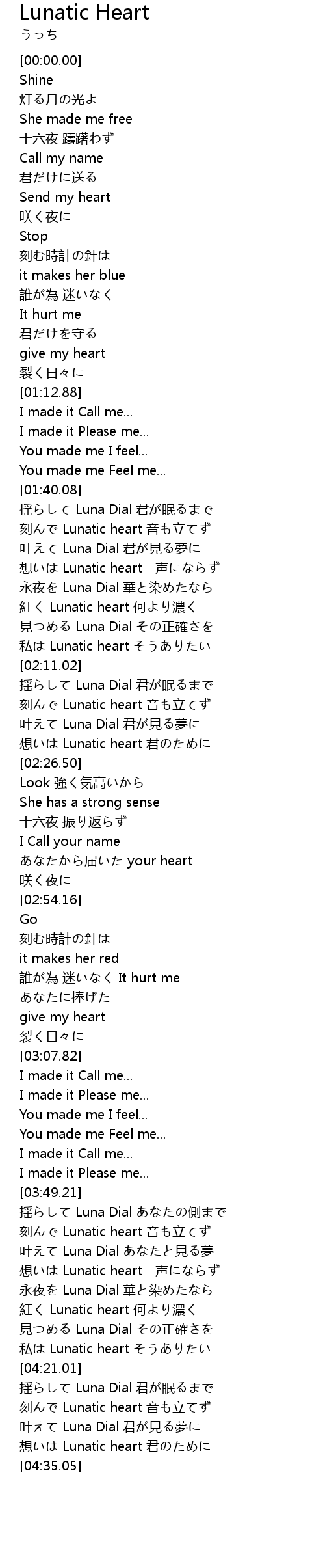 | [04:17.92] | 私は Lunatic heart そうありたい |