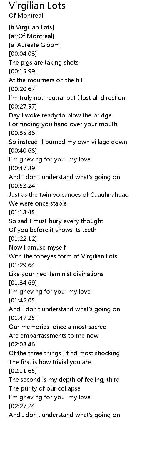 | [01:25.67] | With the tobeyes form of Virgilian Lots |