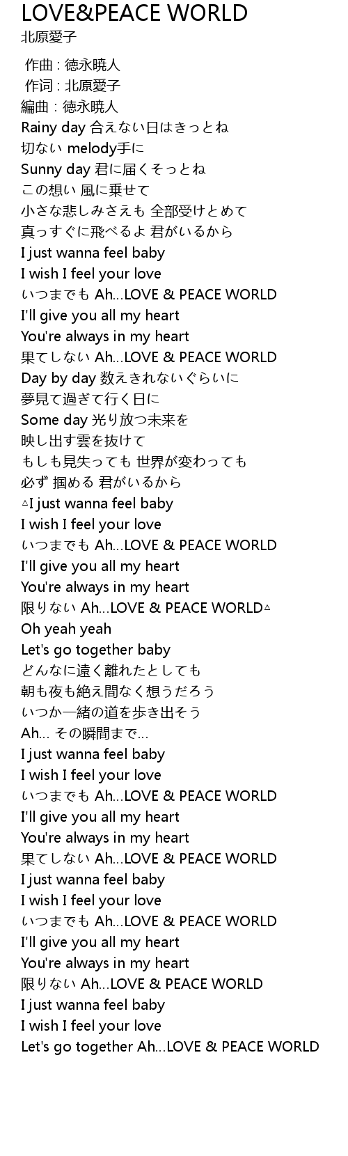 | [03:00.75] | Ah LOVE PEACE WORLD |