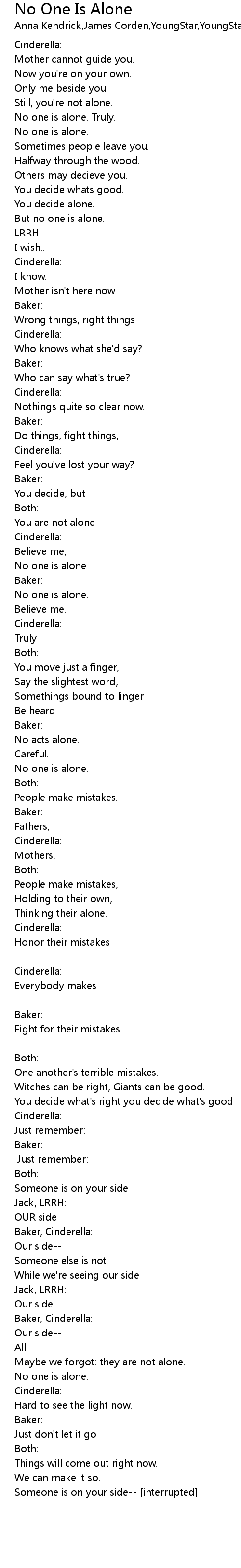 No One Is Alone Lyrics