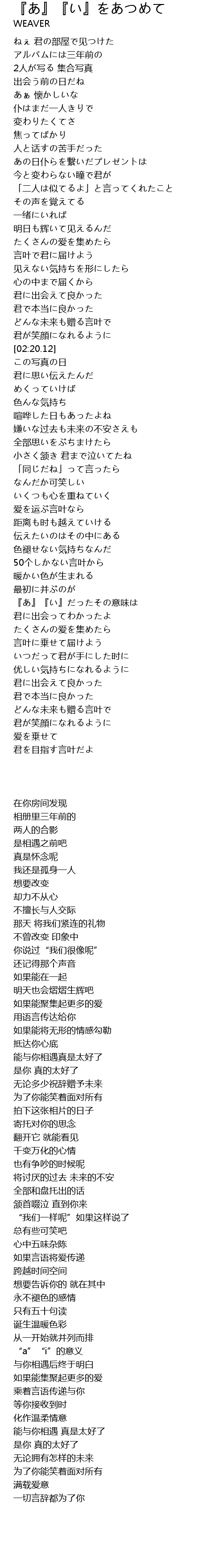 | [03:53.54] | 『あ』『い』だったその意味は |