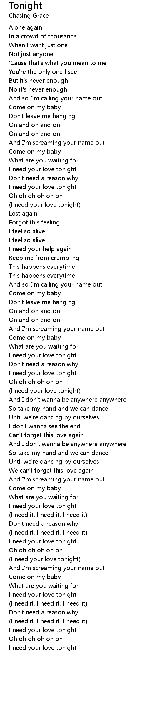 I need your love tonight |