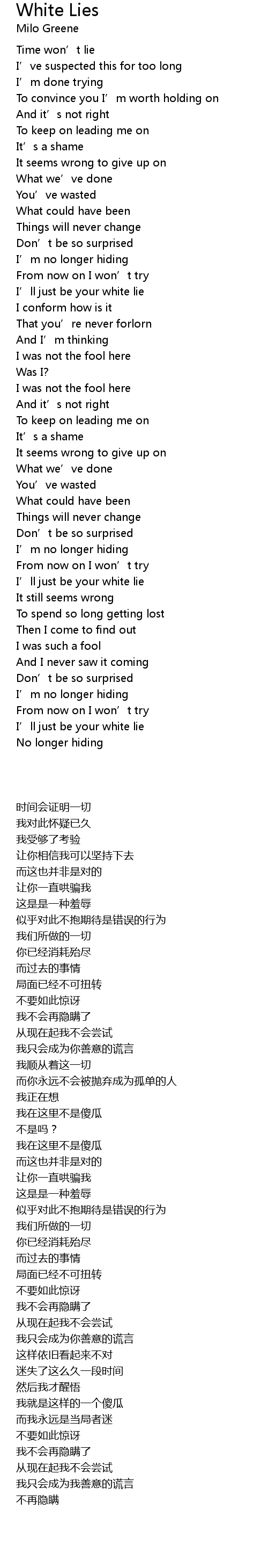 | [02:50.15] | I’ll just be your white lie |