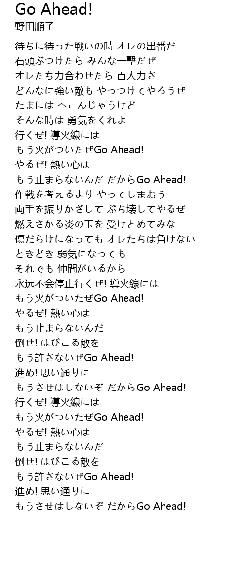 | [03:02.206] | もう許さないぜGo Ahead! |