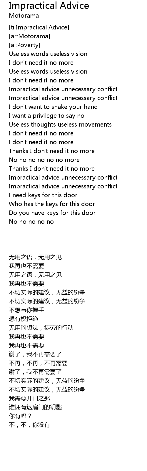 | [01:44.99] | Impractical advice unnecessary conflict |