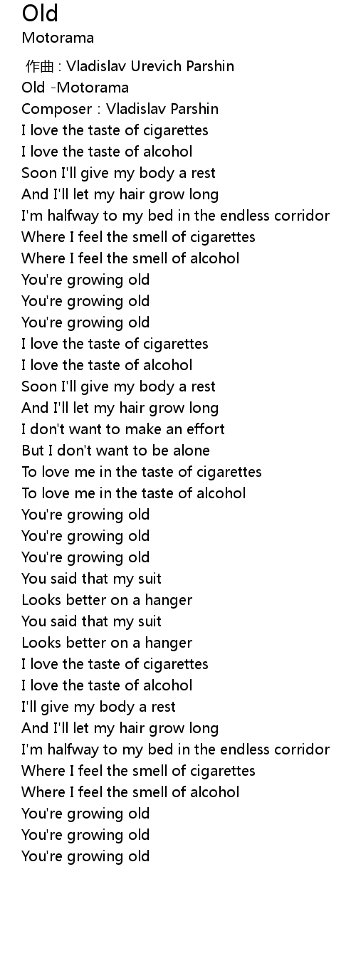| [00:42.809] | You're growing old |