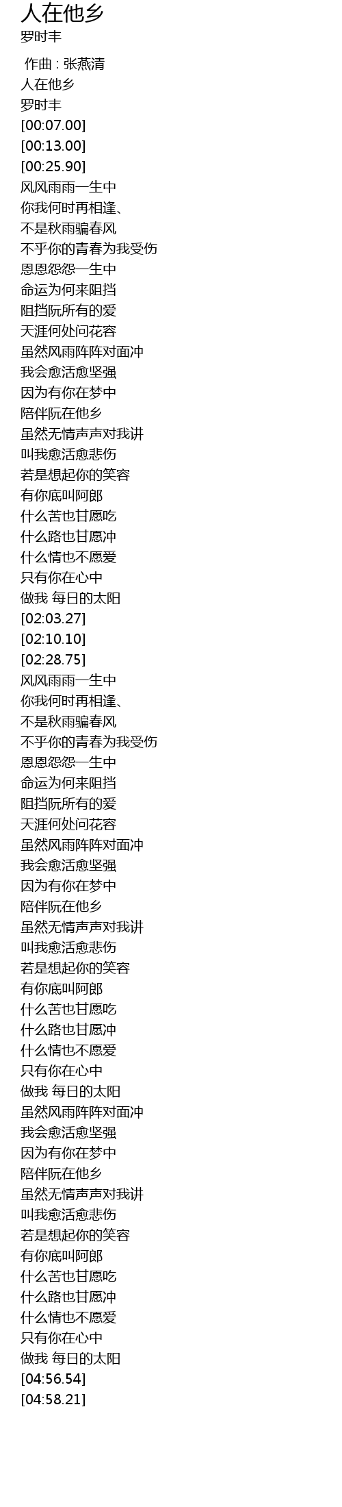 | [00:01.00] | 人在他乡 |