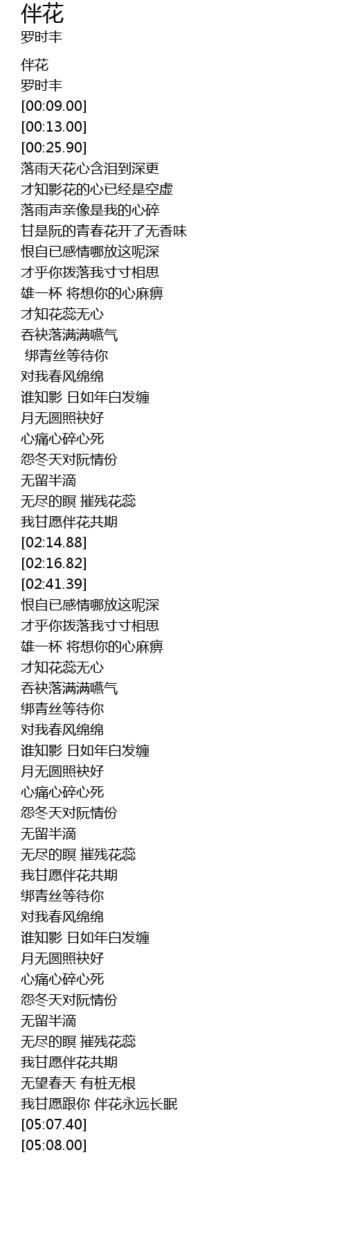 | [02:05.63] | 我甘愿伴花共期 |