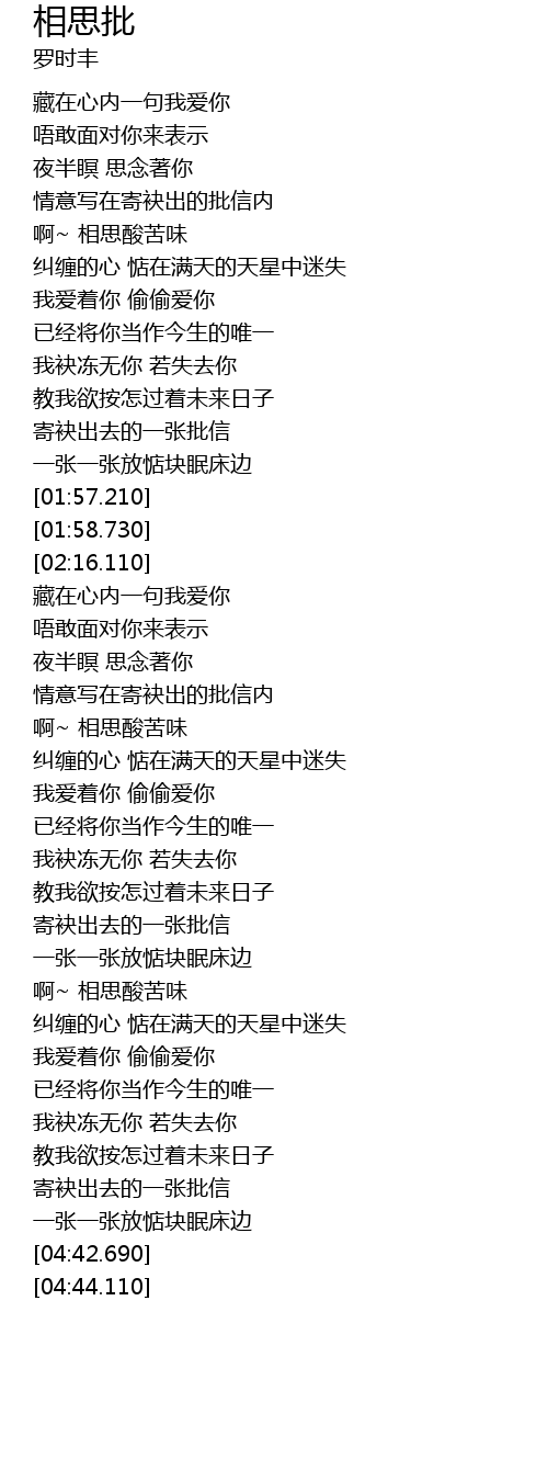 | [02:43.190] | 情意写在寄袂出的批信内 |