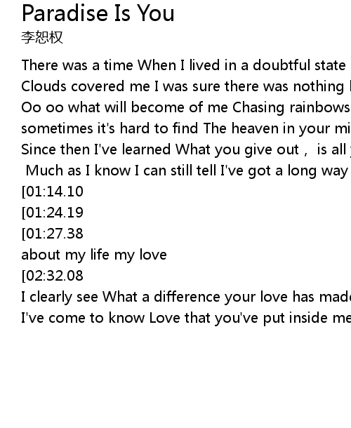 | [02:40.46][02:32.08][02:19.85][01:32.67] | I' ve found my paradise is you |