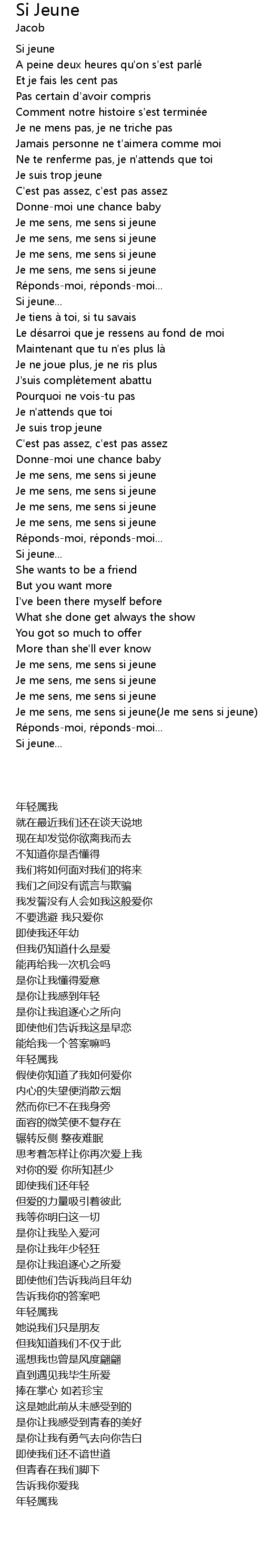 | Song | Si Jeune |
