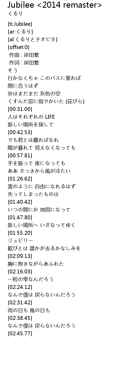 Jubilee <2014 remaster> Lyrics