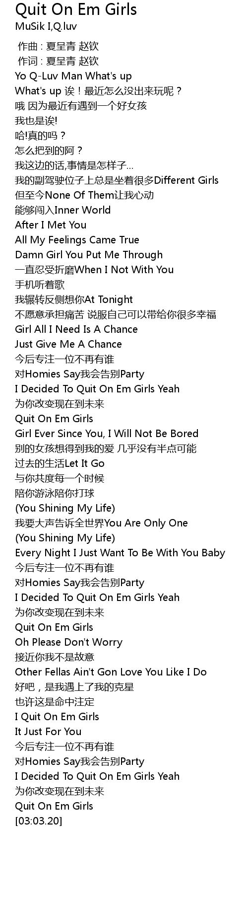 | [02:54.44] | I Decided To Quit On Em Girls Yeah |