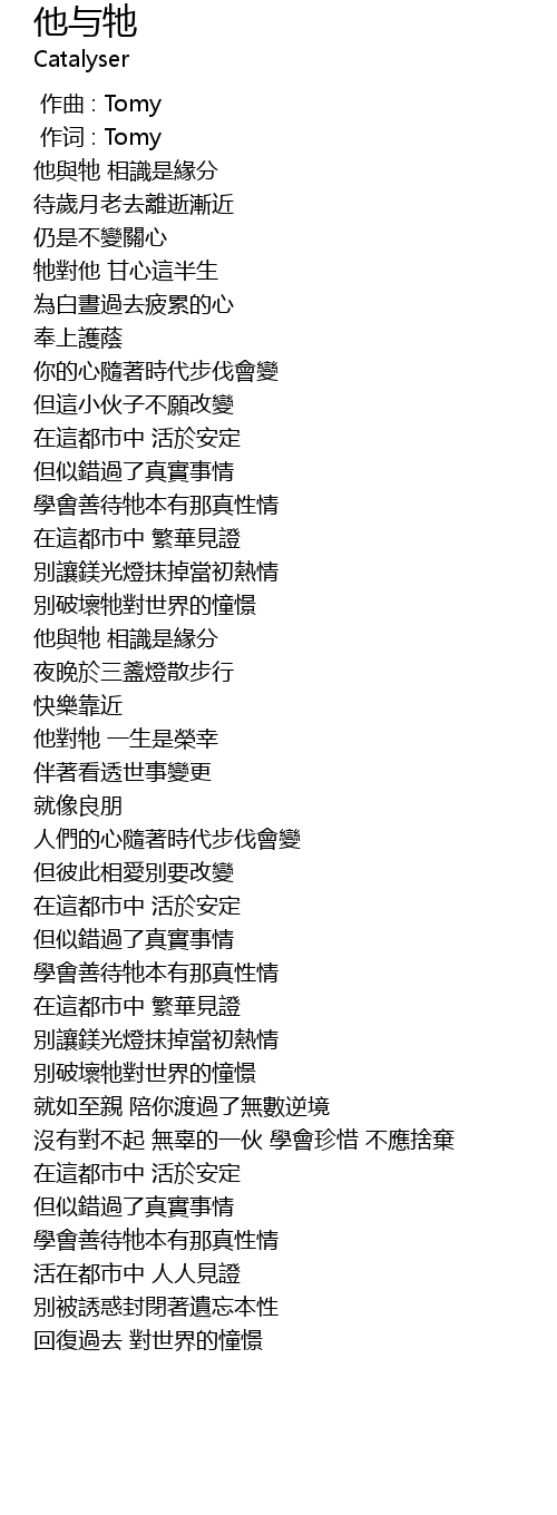 | [00:01.00] | 作词 : Tomy |