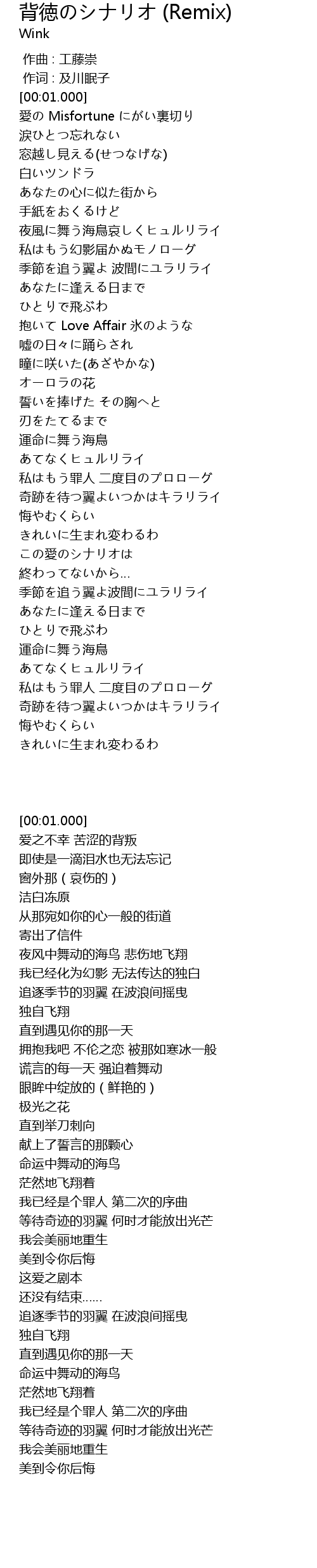 | [01:45.570] | 抱いて Love Affair 氷のような |