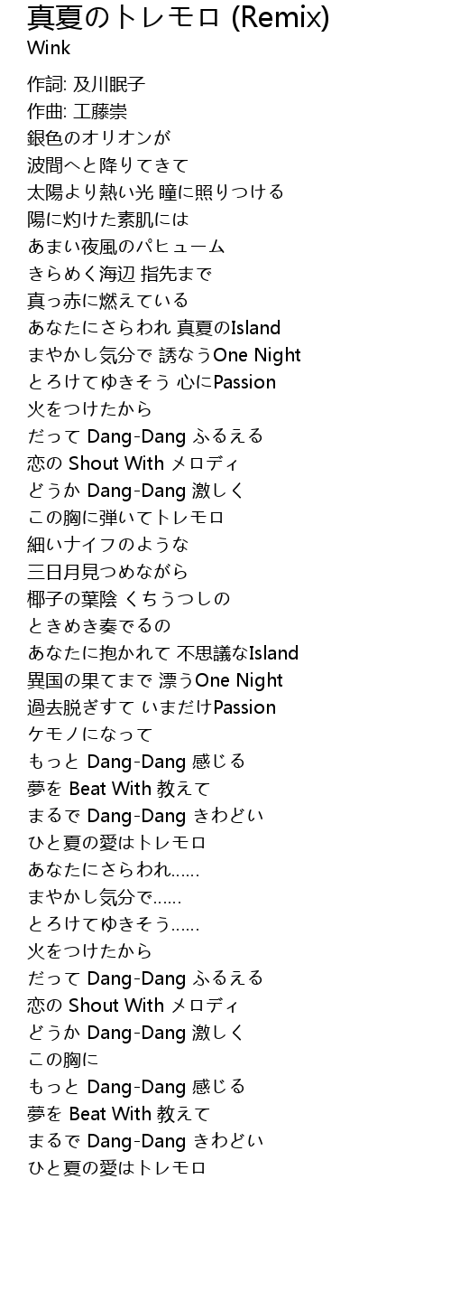 | [00:54.710] | あなたにさらわれ 真夏のIsland |