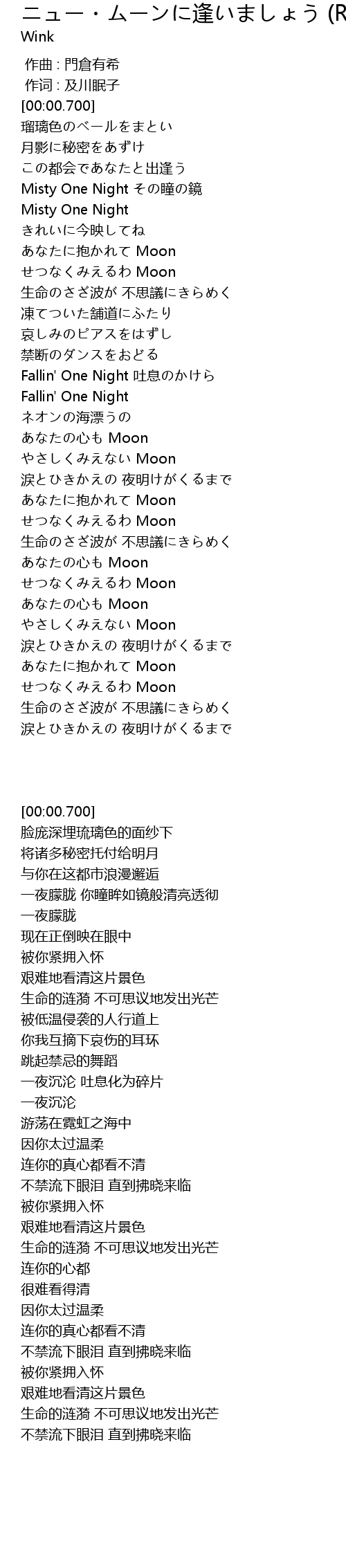 | [01:30.120] | あなたに抱かれて Moon |