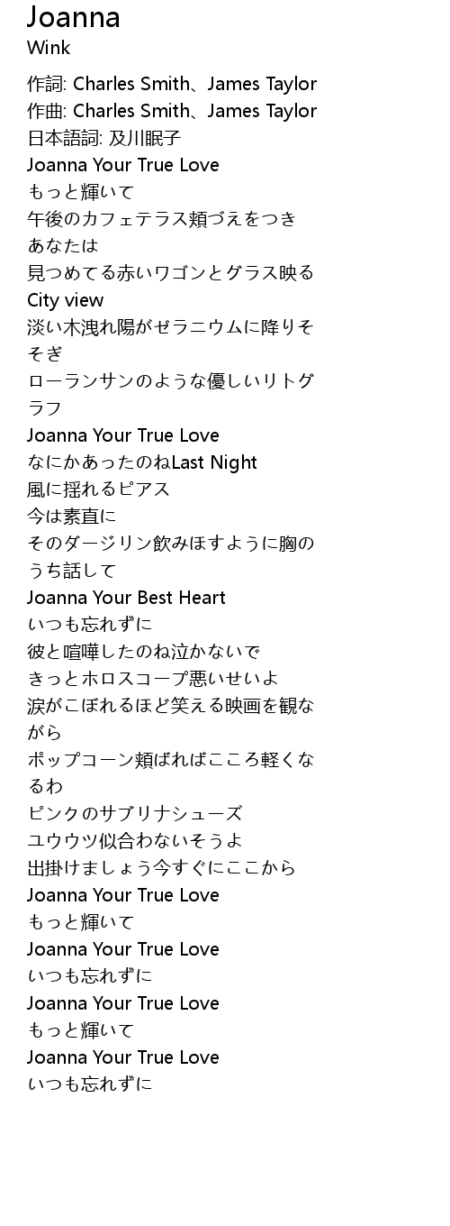 | [00:19.710] | Joanna Your True Love |
