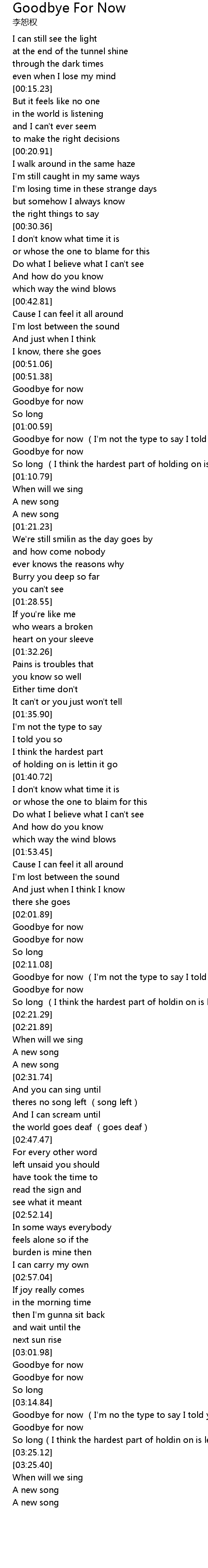 | [03:04.86] | Goodbye for now |