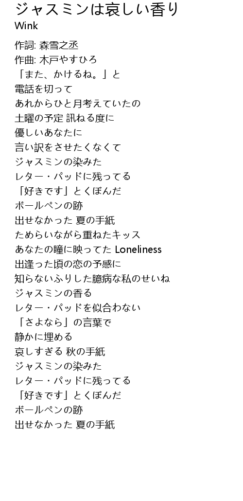 | [01:31.540] | ジャスミンの染みた |