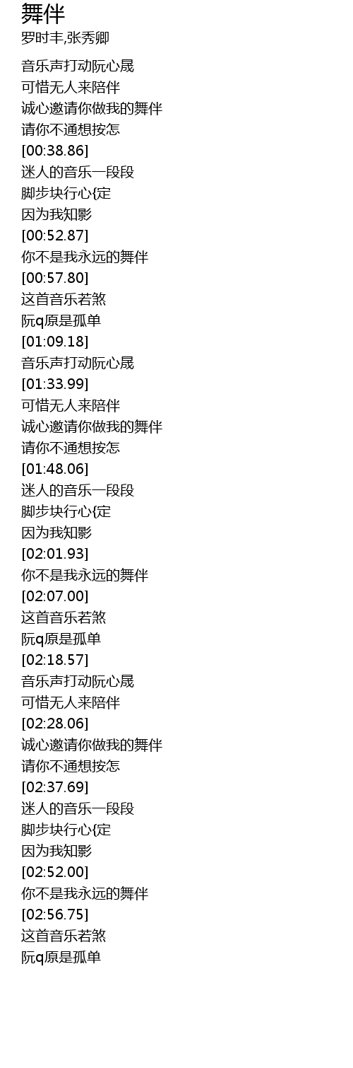 | [01:39.19] | 诚心邀请你做我的舞伴 |