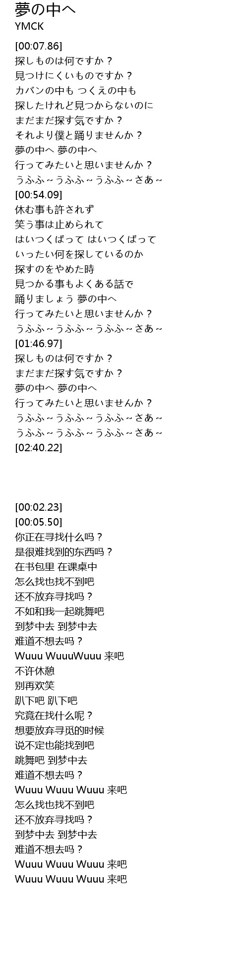 | [02:07.88] | 夢の中へ 夢の中へ |