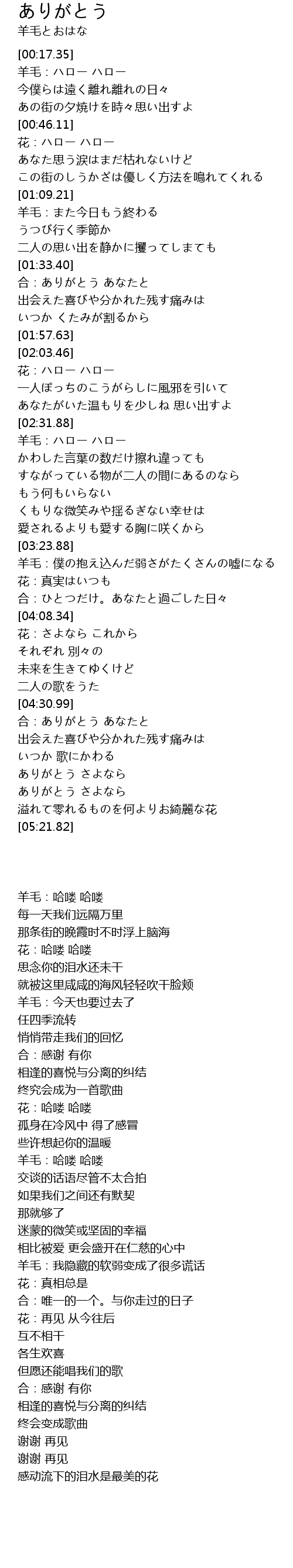 | [00:23.19] | 羊毛:ハロー ハロー |