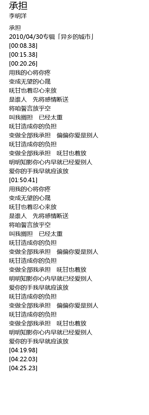 | [03:39.30] | 变做全部我承担 偏偏你爱是别人 |