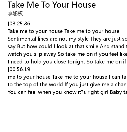 | [01:02.53] | me to your house Take me to your house I can take you |