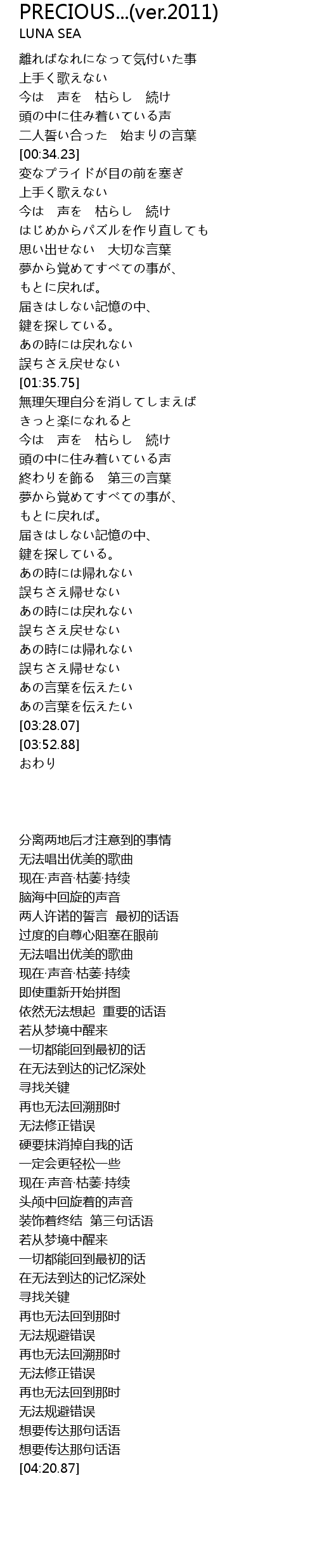 PRECIOUS...(ver.2011) Lyrics