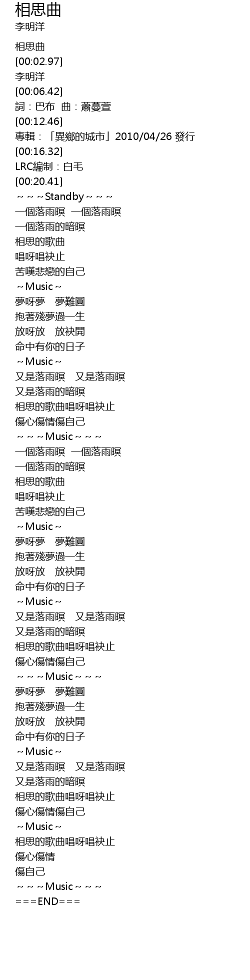 | [02:28.28] | xiāng sī de gē qǔ chàng ya chàng mèi zhǐ |