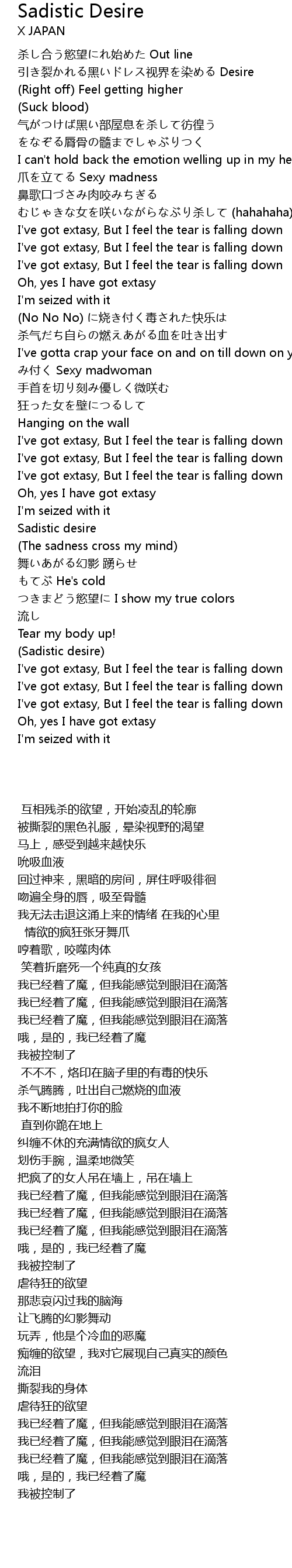 | [02:41.62] | I' ve got extasy, But I feel the tear is falling down |