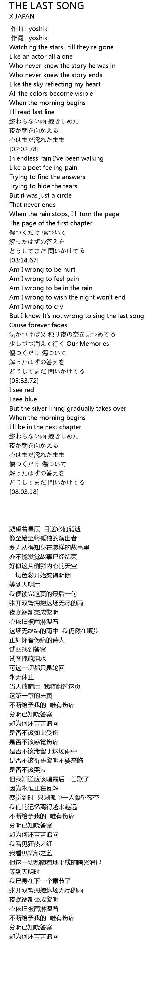 | [00:01.00] | 作词 : yoshiki |