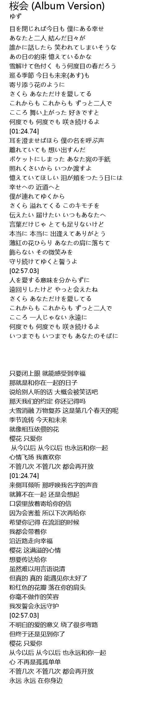 | [02:36.51] | 薄紅の花ひらり あなたの肩に落ちて |