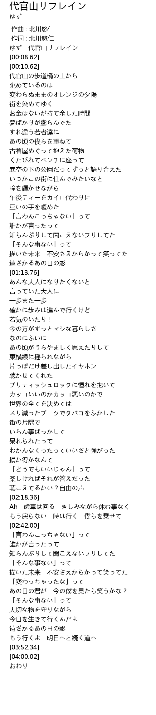 | [00:00.00] | ゆず - 代官山リフレイン |