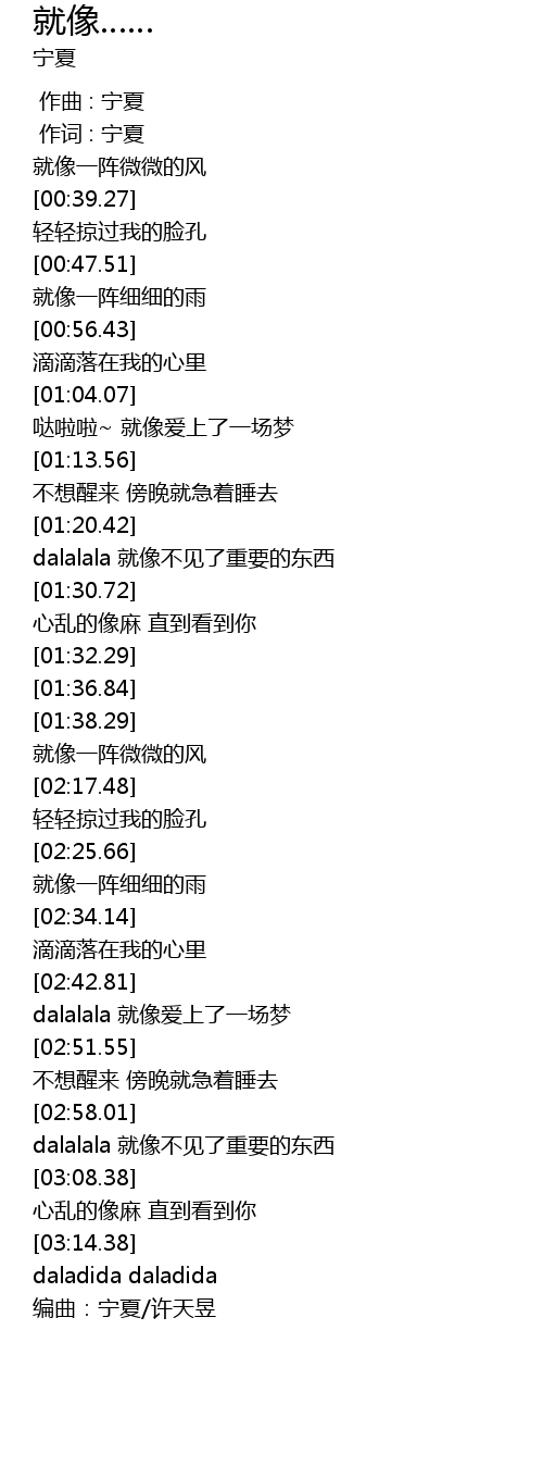 | [00:00.00] | 作曲 : 宁夏 |