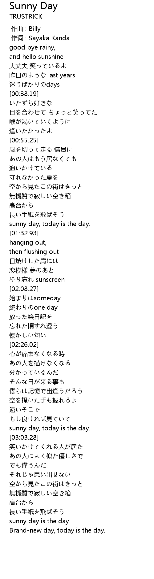| [00:01.00] | 作词 : Sayaka Kanda |