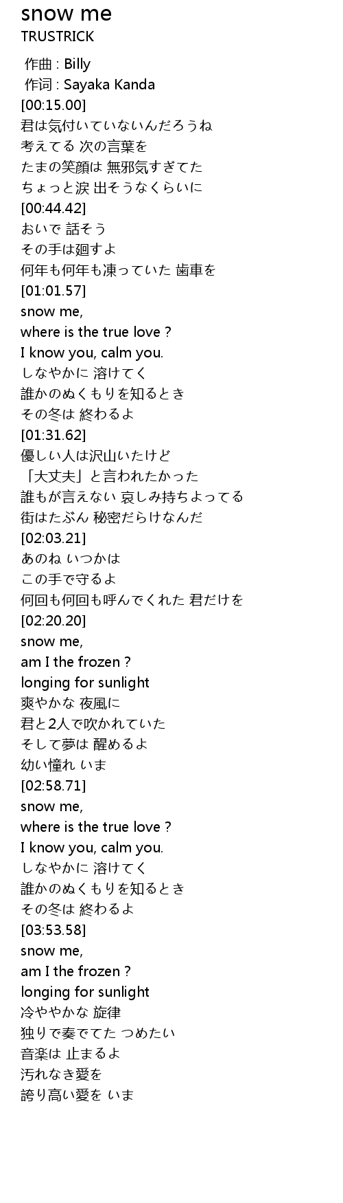 | [03:56.94] | am I the frozen? |