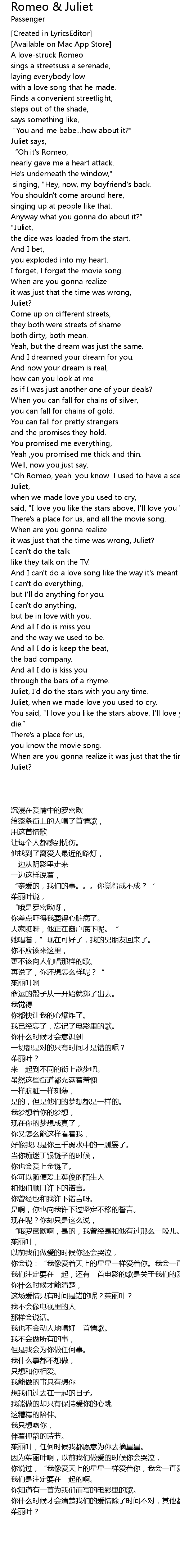 | [00:37.704] | “Oh it's Romeo, |