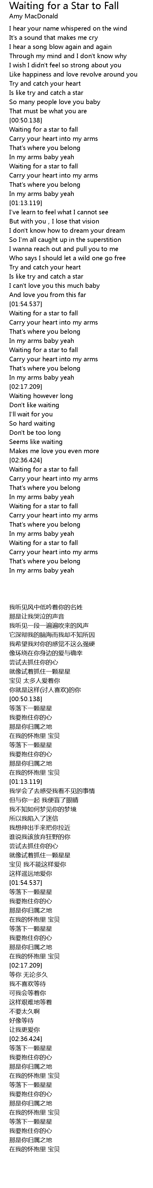 | [03:03.819] | Waiting for a star to fall |