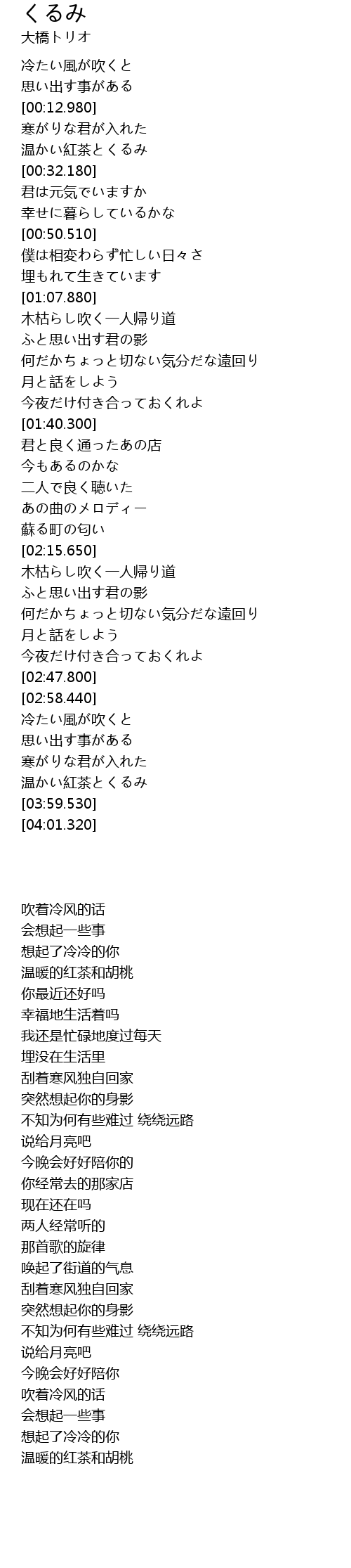 | [02:17.320] | 木枯らし吹く一人帰り道 |