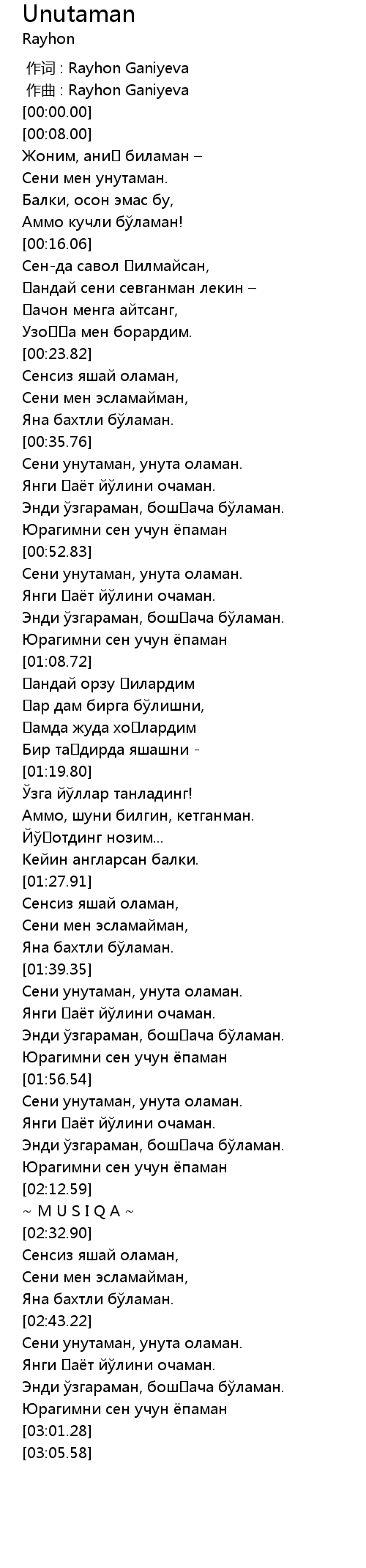 作词 : Rayhon Ganiyeva |